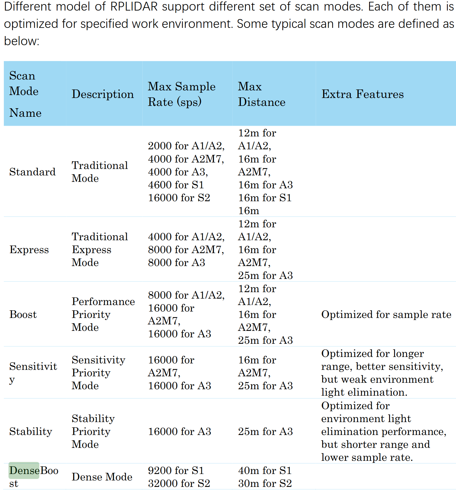 - Standard Mode: Universal but too slow for autonomous navigation.